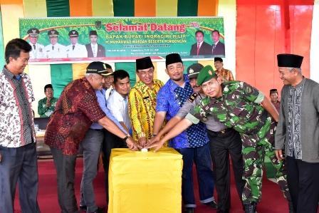 TELUK KIAMBANG -- Bupati Kabupaten Indragiri Hilir (Inhil), HM Wardan meresmikan pelaksanaan program Desa Maju Inhil Jaya (DMIJ) Kecamatan Tempuling Tahun Anggaran 2016 di Desa Teluk Kiambang, Rabu 22 Maret 2017 pagi.