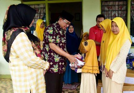 TEMBILAHAN -- Bupati HM.Wardan bersilaturahmi di panti àsuhan Muhammadiyah jalan Pendidikan Tembilahan, Ahad 12 Maret 2017. menyerahkan bantuan pakaian sekolah dan sembako dalam rangka kegiatan Pelaksanaan panti asuhan yang berpenghuni sebanyak 15 orangAnak Panti Asuhan Muhammadiyah Jalan Pendidikan Tembilahan.