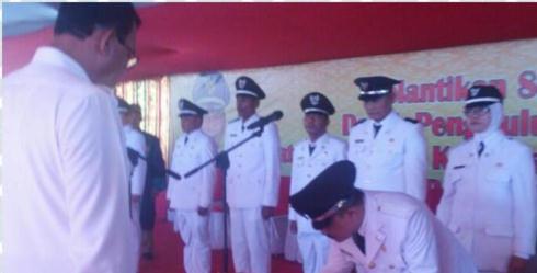 UJUNGTANJUNG -- 13 orang Penghulu terpilih Rayon I dari tiga Kecamatan di Kabupaten Rokan Hilir hasil pemilihan secara langsung Senin 5 Septemebr 2016 dilantik dan diambil sumpahnya oleh Bupati Rokan Hilir H.Suyatno bertempat di Halaman Mesjid Nur Afandi