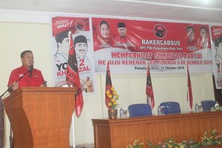 RENGAT -– Guna memperkuat solidaritas partai menuju kemenangan pilkada pada tanggal 9 Desember tahun 2015 di Kabupaten Inhu, DPC PDIP Kabupaten Inhu gelar rakercabsus Sabtu 31 Oktober tahun 2015, di wisma Faive Boy Pemetangreba Inhu.