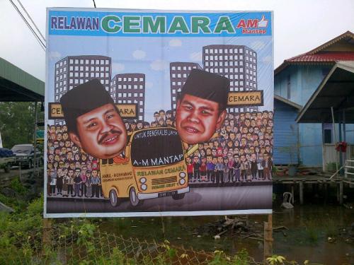 BENGKALIS -- Adanya pemasangan alat peraga kampanye (APK) calon bupati Amril Mukminin mengatasnamakan "Relawan Cemara" terpasang di pelabuhan roro Bengkalis belum dibongkar Panitia Pengawas (Panwas) kabupaten Bengkalis. Sementara pengakuan sebelumnya langsung dari Ketua Panwaslu Mahendra sudah dibongkar.