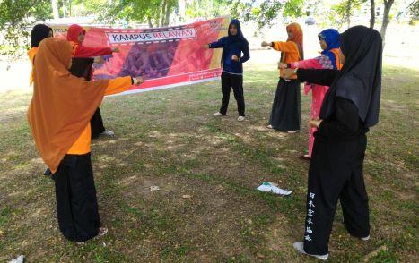 PEKANBARU -- Relawan Rumah Zakat (RZ) kembali taja kegiatan kampus relawan bertajuk seni bela diri dan diikuti oleh beberapa relawan perempuan di lapangan Mesjid Annur Pekanbaru, Sabtu 21 Mei 2016.