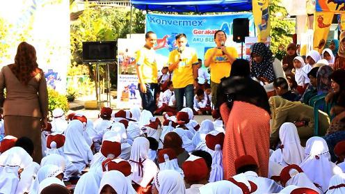 PASIR PENGARAYAN -- Ratusan Murid Sekolah Dasar (SD) 001 Rambah Kabupaten Rokan Hulu (Rohul) Riau mengikuti lomba mewarnai obat cacing keluarga Konvermex bertempat di halaman sekolah setempat, Senin 15 Agustus 2016.