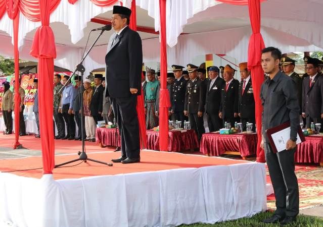 SIAK -- gaungriau.com -- Peringatan hari pahlawan ke 73 tahun 2018 di Siak berlangsung di lapangan tugu depan Istana Siak Sabtu 10 Nopember 2018. Peringatan hari pahlawan tahun ini mengangkat tema "Semangat Pahlawan di Dada ku".