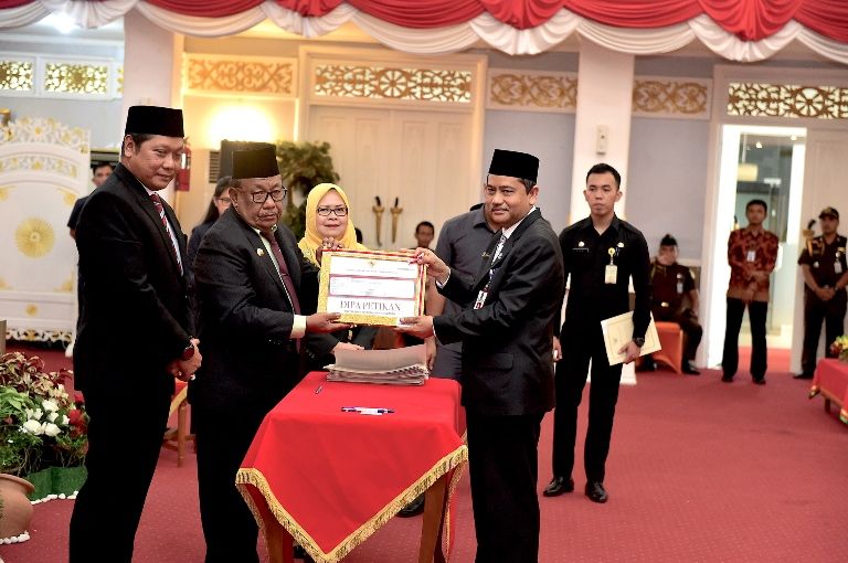 PEKANBARU -- gaungriau.com -- Gubernur Riau Wan Thamrin Hasyim serahkan Daftar Isian Anggaran (DIPA) dan Daftar Alokasi Transfer ke Daerah tahun anggaran 2019. Penyerahan secara simbolis kepada sektor instansi vertikal dan satuan kerja Organisasi Perangkat Daerah (OPD) selaku kuasa anggaran.
