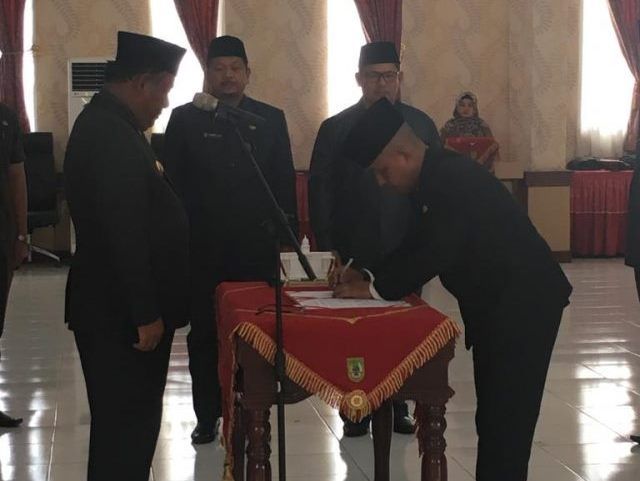 PANGKALAN KERINCI -- Beberapa jam jelang pergantian tahun 2018 ke 2019, Pemerintah daerah (Pemda) Pelalawan melakukan pelantikan pejabat, Senin 31 Desember 2018.