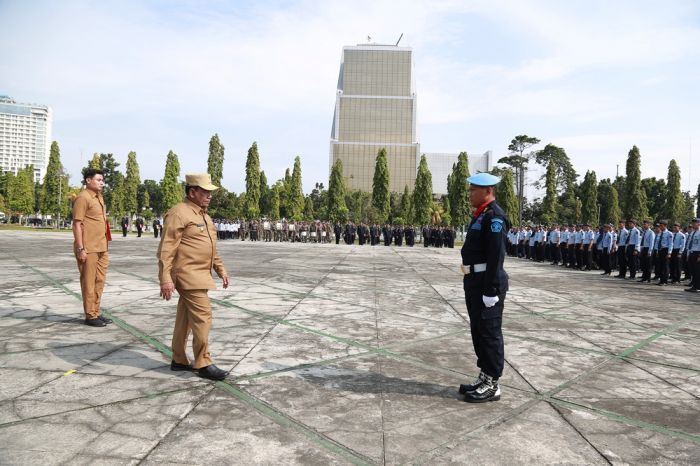 PEKANBARU -- gaungriau.com -- Pelaksana Tugas (Plt) Gubernur Riau Wan Thamrin Hasyim menjadi Inspektur Upacara (Irup) peringatan hari Dharma Karyadhika Kemenkumham RI Tahun 2018 di halaman kantor Gubernur Riau, Selasa 30 Oktober 2018.