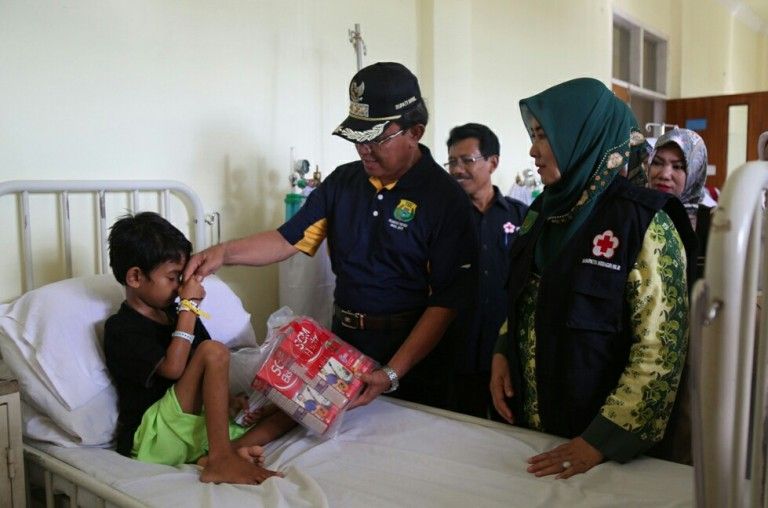 Bupati Inhil Bersama Ketua PMI Jenguk Pasien Penderita Gizi Buruk