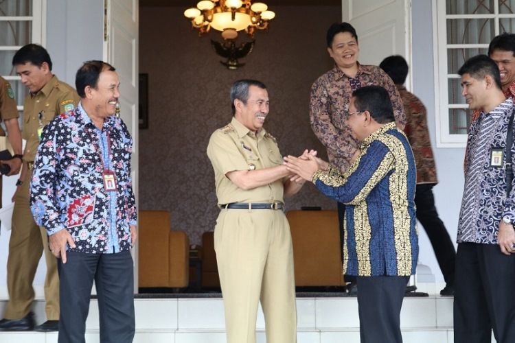 SIAK -- Tak kenal maka tak sayang. Baru bertugas di Riau sebagai Kepala Kantor Wilayah Pajak Provinsi Riau, Edwar Hamonangan Sianipar yang baru saja dipindahtugaskan dari Jakarta, langsung sowan dengan Bupati Siak sekaligus Gubernur Riau terpilih H Syamsuar.