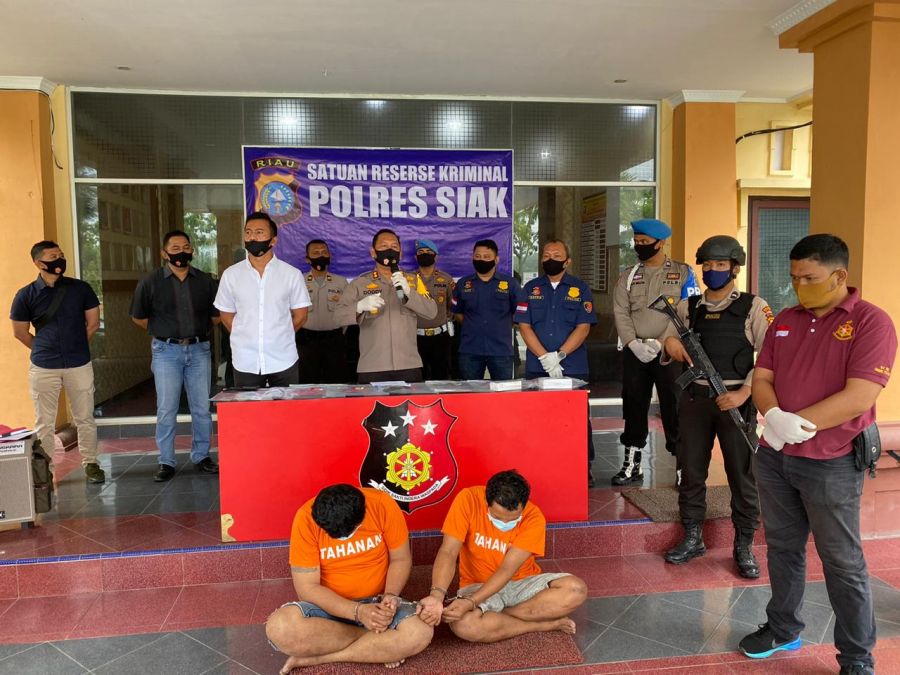 Gaungriau.com (SIAK) -- Kapolres Siak AKBP Doddy F Sanjaya SH SIK MIK didampingi Kasat Reskrim Polres Siak AKP Noak P Aritonang SIK dan Kanit Reskrim Polsek Minas Iptu Dafris SH MH menggelar Konferensi Pers pada Selasa 4 Agustus 2020 terkait penangkapan pelaku pencurian dengan kekerasan yang terjadi 2 kali…