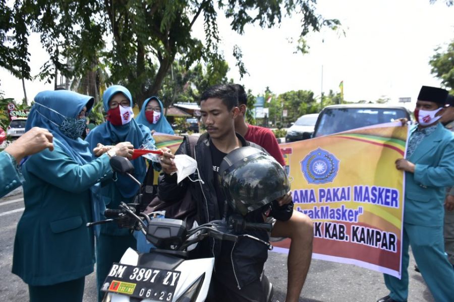 Sempena HUT RI ke-75, TP PKK Kampar Bagi-bagi Masker