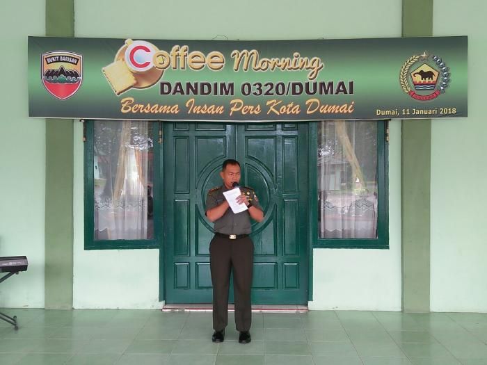 DUMAI -- Gaungriau.com -- Menjalin tali silaturahmi yang semakin erat dengan insan pers, Komandan Distrik 0320/Dumai menggelar Coffee Morning dengan awak media, Kamis 11 Januari 2018 pagi.