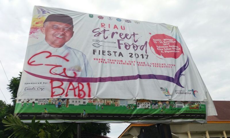 PEKANBARU -- Baleho Gubernur Riau Arsyadjuliandi Rachman kembali dicoret dengan tulisan dan gambar tak pantas. Coretan digambar orang nomor satu di Riau ini tersebar disejumlah titik, diantaranya di Kantor Dina Pemudan da Olahraga (Dispora) di Jalan Dr Sutomo, Gedung Wanita Jalan Diponegoro, Gedung Olahraga (GOR) Tribuana di Jalan Diponegoro.…