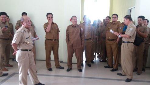 PELALAWAN -- Pada hari pertama masuk kantor usai libur lebaran, Bupati Pelalawan HM. Harris lakukan sidak ke beberapa Dinas, diantaranya Dinas Kesehatan, Dinas PU, Dinas Pendidikan, Dishubkominfo, RSUD BLUD Selasih dan BPMPD, Senin 11 JUli 2016.