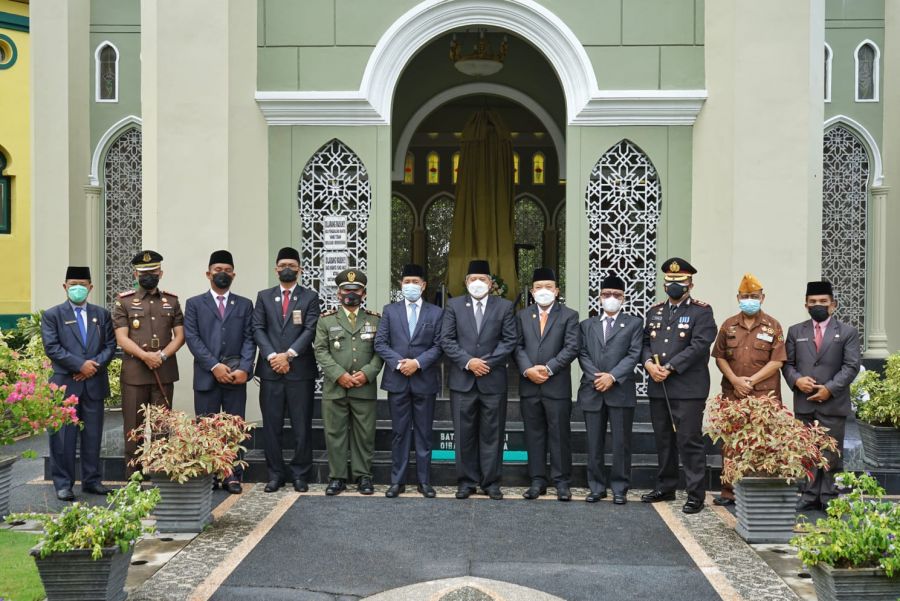 Gaungriau.com (SIAK) -- Upacara tingkat Kabupaten Siak tahun 2021 ini digelar di Halaman Makam Pahlawan Nasional Sultan Syarif Kasim II.Jl.Sultan Ismail Siak Sri Indrapura Rabu 10 Nopember 2021.