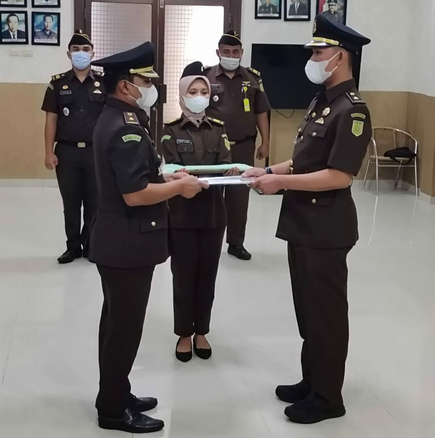 Gaungriau.com (DUMAI) -- Dipimpin Kepala Kejaksaan Negeri (Kejari) Kota Dumai Khairul Anwar, Dua pejabat yakni Kepala seksi di lingkungan Kejari Dumai lakukan serah terima jabatan, mereka adalah Kasi Pidana Umum dan Kasi Intelijen, Rabu 1 September 2021.