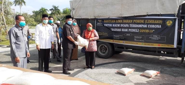 Gaungriau.com (SIAK) -- Bertempat dihalaman kantor Bupati Siak Senin 13 April 2020 , Baznas Kabupaten Siak menyerahkan bantuan sebanyak 4750 Paket sembako yang diperuntukan untuk masyarakatditempat belas kecamatan se-kabupaten Siak .