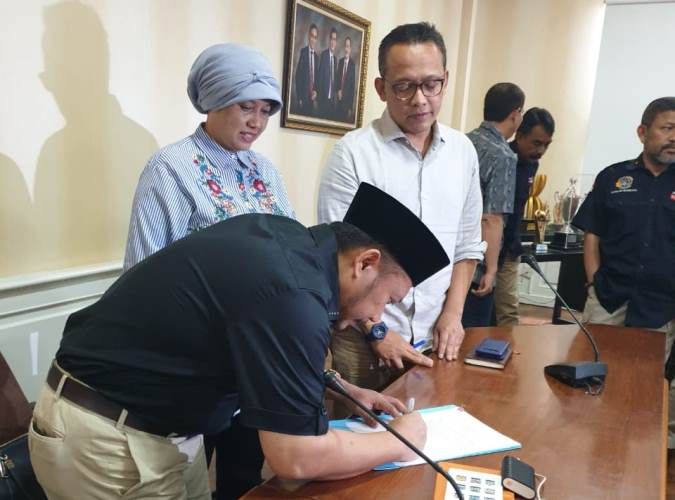 Acara ini ditandai dengan penandatanganan dokumen serah terima posisi dari Ny. Siska Irdaningsih M. Zaki kepada Ny. Yurniziarti Yusmar yang kini resmi menjabat sebagai Pelaksana Tugas (Plt.) Ketua DWP Rokan Hulu.