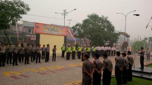 PASIR PENGARAYAN - Dalam rangka pelaksanaan Operasi Zebra 2015 yang akan digelar serentak mulai Kamis 22 Oktober 2015, Kepolisian Resort (Polres) Rokan Hulu (Rohul) mengawalinya dengan apel gelar pasukan di halaman Mapolres Rohul dipimpin langsung oleh Kapolres Rohul AKBP Pitoyo Agung Yuwono SIK MHum.