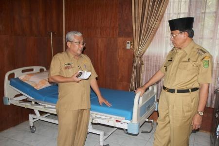 TEMBILAHAN -- Bupati Kabupaten Indragiri Hilir (Inhil) HM Wardan didampingi Plt Kadiskes Inhil dan kepala BPBD meninjau Rumah Singgah Dampak bencana asap akibat Karhutla untuk bayi dan ibu hamil serta lansia di jalan M Boya Tembilahan tepatnya disamping kantor Diskes Inhil, Selasa 3 Nopember 2015.