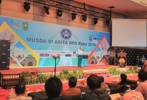 PEKANBARU -- Wakil Bupati Siak Drs H Alfedri MSi, Selasa 16 Februari 2016, berkesempatan memaparkan berbagai potensi wisata yang ada di Kaupaten Siak, dihadapan peserta Musyawarah Daerah (Musda) ke VI Association of Indonesian Tours & Travel Agncies (ASITA) Riau.