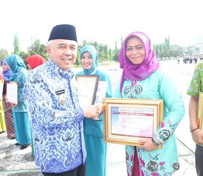Hj Misnarni Syamsuar Terima Penghargaan Terbaik 1 Kelompok BKB Riau
